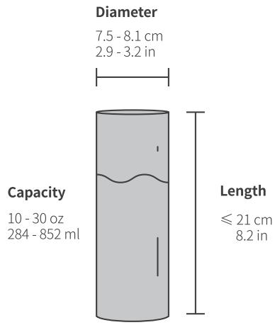 leaseensure the tumble is clean without any liquol rdust on the surace; Please remove the lid before putting the tumbler into the machine; Do not put the tumbler into the machine while preheating; Please use tumblers of the appropriate diameters and lengths. (For more details, check the dimensions chart below.)