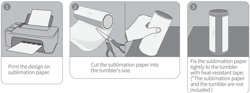 A Ensure the sublimation paper is fixed to the tumbler closely with heat-resistant tape;