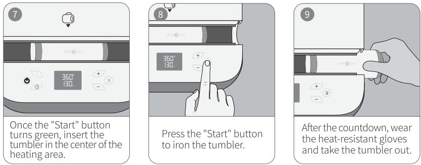 Please wear heat-resistant gloves when taking the tumbler out of the machine to avoid burns;